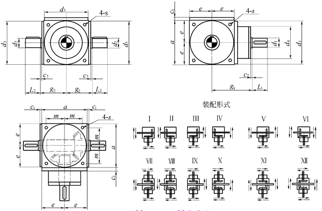 SPS型轉向箱的外形和連接尺寸